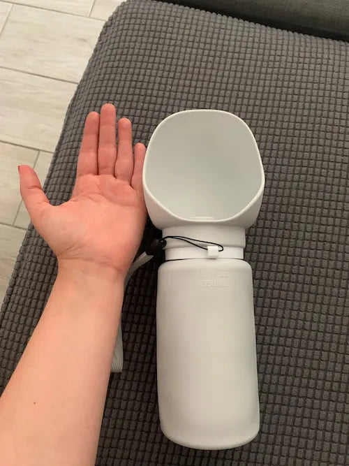"OMG, this has changed our walks with Max! No more worries about him staying hydrated. Easy to fold and carry, and Max loves drinking from it. The best travel bottle I've ever used for him. Highly recommend this to all pet parents! 😍"